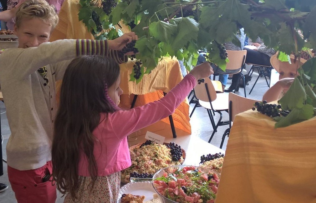 Deze keer waren er zo’n 70 mensen. De kinderen vonden het geweldig om de druiven zo van de ranken te mogen plukken.
